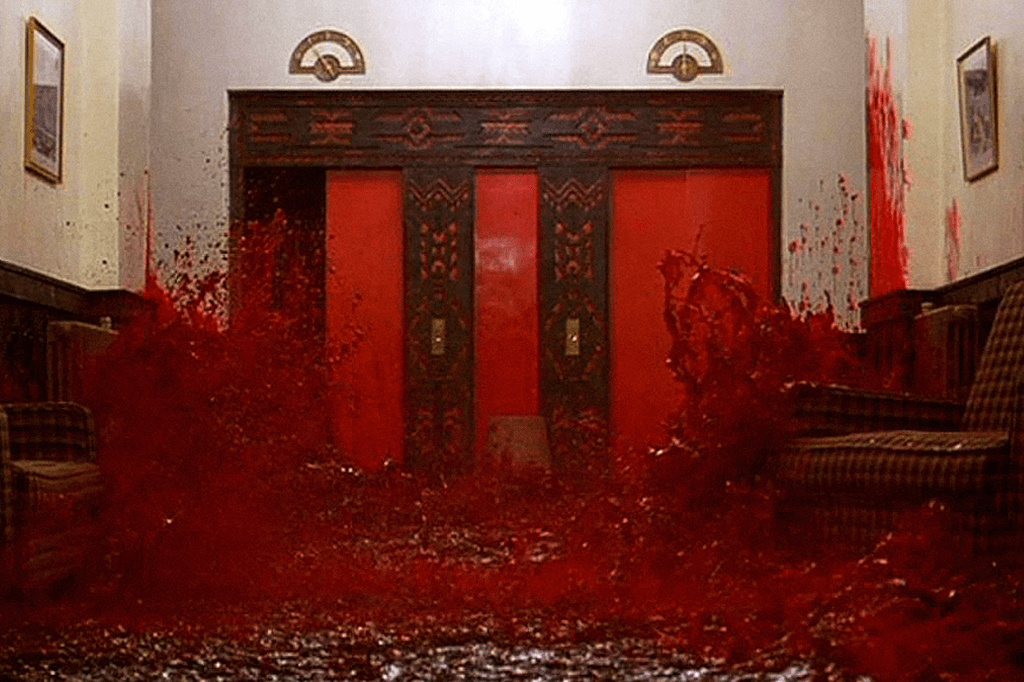 Vamos começar com o filme que tem umas das mais famosas cenas de sangue do cinema! O Iluminado conta a história de uma família que vai cuidar de um hotel isolado durante o inverno, quando o patriarca tenta sair de um bloqueio criativo, e acaba descobrindo que o local contém terríveis segredos e oferece forte influencia sobre seus ocupantes. A cena do elevador de sangue demorou incrivelmente cerca de um ano pra ser finalizada e gastou cerca de 900 galões de sangre pra ser gravada! Mas ficou espetacular!!!