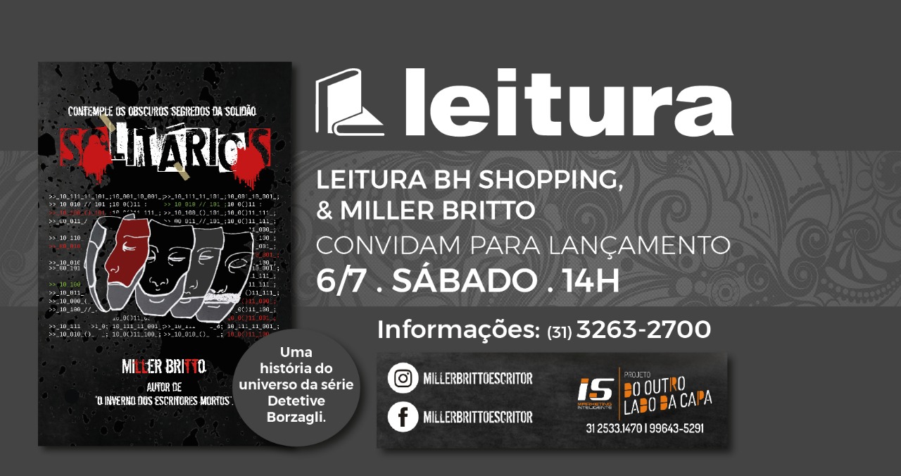 O escritor mineiro Miller Britto, lança no dia 6 de julho, a partir das 14h, o livro Solitários, terceiro volume da série Detetive Borzagli.